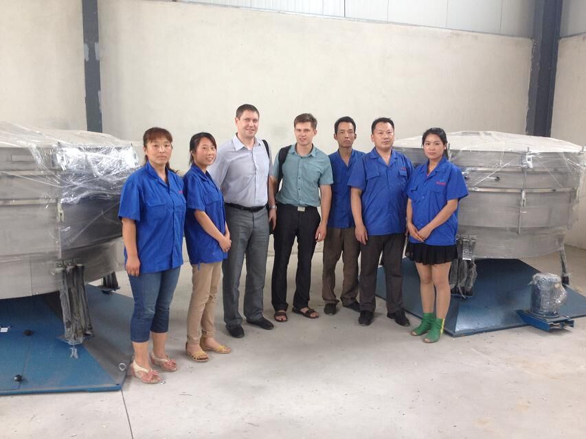 兩臺振動電機(jī)作同步相反運(yùn)動,物料受力被拋起,并向前作直線運(yùn)動。 一、影響物料在篩面上運(yùn)動軌跡的因素: 1、電機(jī)的安裝角度:角度越大物料在篩面上做拋物運(yùn)動軌跡的跨度值越大,所以 產(chǎn)量越大,相反精度越低。 2、電機(jī)的激振力:激振力的大小直接影響物料在篩面上做拋物運(yùn)動軌跡的拋物高度值。另,兩臺電機(jī)的激振力必須是相等的: 3、篩機(jī)的自身高度:可設(shè)計正、負(fù)角兩種方案。 二、篩網(wǎng)的安裝 1、單層篩網(wǎng):適合比較好篩、物料比重較輕和要求篩網(wǎng)目數(shù)不大的物料。 2、子母網(wǎng)(托網(wǎng)加篩分網(wǎng)):適合比較好篩、物料比重較重和要求篩網(wǎng)目數(shù)不大的物料。 3、單層帶彈球:適合不太好篩容易堵網(wǎng)需要彈球清網(wǎng)和物料比重較輕的物料。 4、子母網(wǎng)帶彈球(托網(wǎng)加篩分網(wǎng)加彈球):適合不太好篩容易堵網(wǎng)需要彈球清網(wǎng)和物料比較重的物料。 三、網(wǎng)架材質(zhì): 1、木質(zhì)網(wǎng)架:制造成本低,換網(wǎng)方便,篩網(wǎng)的損壞幾率較低,密封性相對略好 2、鋼質(zhì)網(wǎng)架:物料有特殊要求時,物料比重過高和顆粒較大的 四、適合篩分的物料和目數(shù): 1、石英砂:10目、20目、40目、80目、120目; 2、活性碳:6目、16目、24目、48目; 3、石粉:6目、16目、24目、48目; 4、耐火材料:10mm、8mm、5mm、1mm、40目、120目。