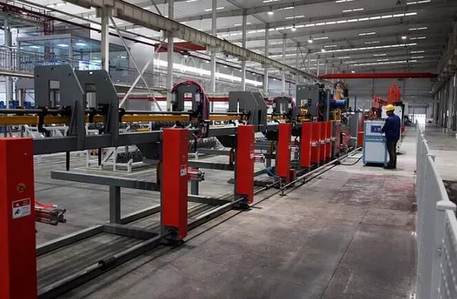 在項目建設(shè)初期,該公司引進(jìn)國內(nèi)先進(jìn)水平的PC生產(chǎn)流水線、全自動智能鋼筋加工線并開發(fā)智能混凝土攪拌站。PC流水線由自動清掃、噴油、劃線、邊模安裝、混凝土澆筑、趕平、預(yù)養(yǎng)護(hù)窯、抹光、養(yǎng)護(hù)、翻轉(zhuǎn)、沖洗等自動化設(shè)備組成,整個流水線各操作平臺由中央控室統(tǒng)一調(diào)度、控制,實現(xiàn)智能化、自動化生產(chǎn);鋼筋加工流水線是由全自動智能鋼筋桁架焊接機(jī)器人、全自動智能鋼筋彎箍機(jī)器人、全自動智能鋼筋柔性調(diào)直機(jī)器人、棒材鋼筋加工中心等鋼筋加工設(shè)備組成,可實現(xiàn)圖形輸入,數(shù)控加工;公司使用的混凝土攪拌站,是由徐工施維英有限公司設(shè)計、制造的符合公司生產(chǎn)實際需要的行業(yè)先進(jìn)裝備,該設(shè)備擁有“一站式雙主機(jī)、立體料倉”的特點(diǎn),可生產(chǎn)多品種混凝土,尤其具有同時生產(chǎn)兩種型號混凝土的功能。