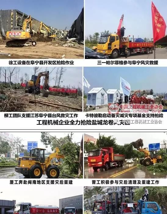 2015年底以來,深圳發(fā)生大范圍滑坡災(zāi)害、江蘇鹽城市阜寧、射陽等地出現(xiàn)強(qiáng)對流天氣、超強(qiáng)龍卷風(fēng)襲擊、閩南地區(qū)遭遇強(qiáng)臺風(fēng)“莫蘭蒂”……在這些災(zāi)害發(fā)生時(shí),廈工、晉工、中聯(lián)重科、林德叉車、徐工、三一帕爾菲格、柳工、卡特彼勒等工程機(jī)械企業(yè)快速反應(yīng),迅速集結(jié)救援設(shè)備,第一時(shí)間投入到搶險(xiǎn)救援中去。紛紛派出大型工程機(jī)械設(shè)備和援助隊(duì)伍加入到救援與災(zāi)后重建工作,并向?yàn)?zāi)區(qū)捐款捐物、捐贈機(jī)械設(shè)備,展現(xiàn)了工程機(jī)械行業(yè)企業(yè)一如既往的強(qiáng)烈社會責(zé)任感和崇高的奉獻(xiàn)精神。