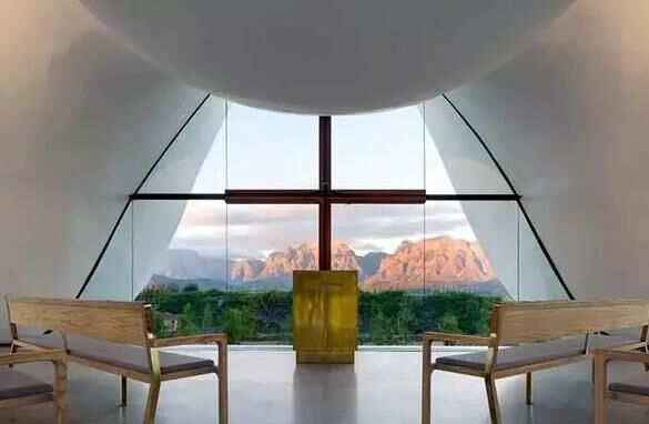 這座優(yōu)美的混凝土小教堂宛如一首小提琴協(xié)奏曲坐落在開普敦城外風景如畫的Bosjes農場。
