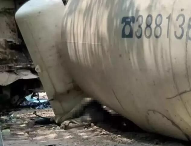 一輛混凝土車撞上一名騎摩托車的男子,摩托車被壓扁粉碎,駕駛員頭部被壓,當場不幸身亡?;炷淋嚿⒓軋髲U,司機受輕傷。