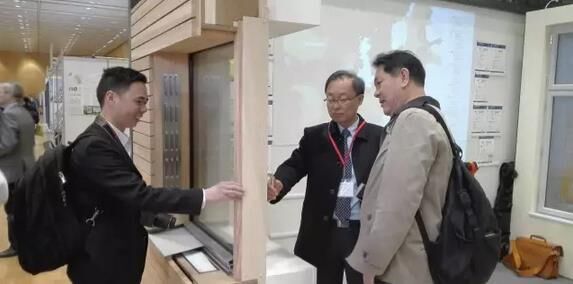 福建奮安集團粱觀榮銷售總經(jīng)理、上??私j(luò)蒂孫生根董事長、佛山市筑建集成房屋副總謝力丁在探討展商型材問題