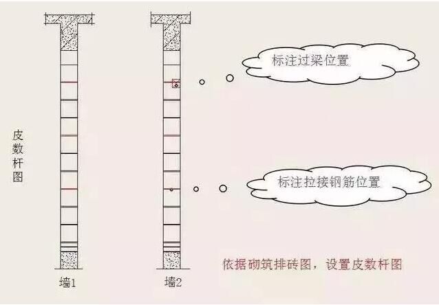 ( 2 )施工時在墻體轉(zhuǎn)角處立好皮數(shù)桿或利用混凝土墻柱做皮數(shù)桿,桿上標明塊層、灰縫、窗臺板、門窗洞口、過梁、圈梁、預制件等的高度及位置,并應隨時檢查其準確性。