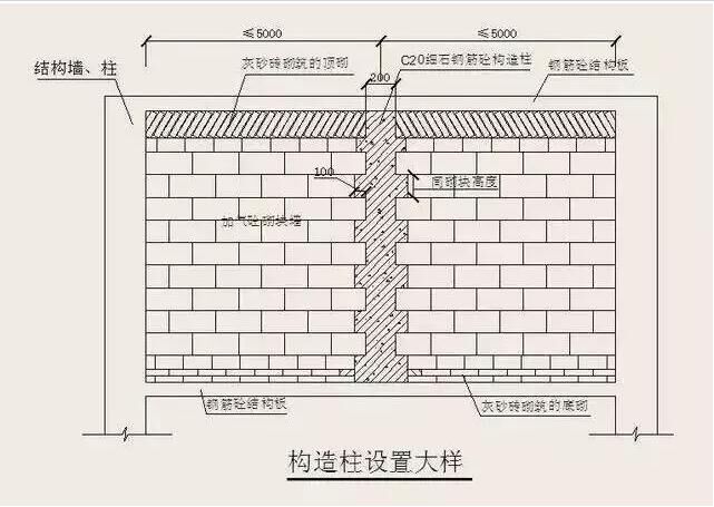 構(gòu)造柱的截面尺寸不應小于(墻厚×200mm),混凝土強度等級不應低于C20。