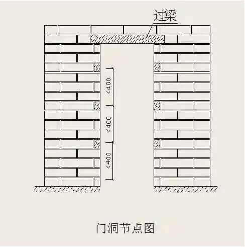 當內(nèi)墻為砌體時,應沿門洞口兩側(cè),采取灰砂磚或水泥磚或C20混凝土預制塊,以每隔500~600mm間距替換加氣磚;門洞兩側(cè)自離地500起,采取灰砂磚或水泥磚或C20混凝土預制塊。