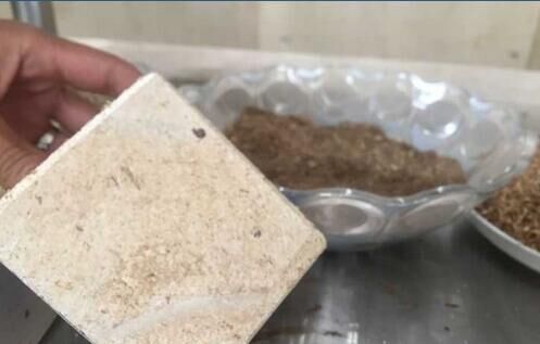 上生產(chǎn)出來的鋼鈣秸稈實心墻板已擺放得整整齊齊?!斑@些機器‘吃’進去的是秸稈,‘吐’出來的是墻板,正適合當作建筑外墻屋面材料?!痹摴窘?jīng)理文華銀拿出了一塊墻板樣品,側切面能清晰地看到秸稈碎屑。盡管摸上去第一感覺像木頭,但用手使勁兒敲打卻能感受到足夠的硬度,“每平米墻板所含的秸稈能達到60%至80%?!?