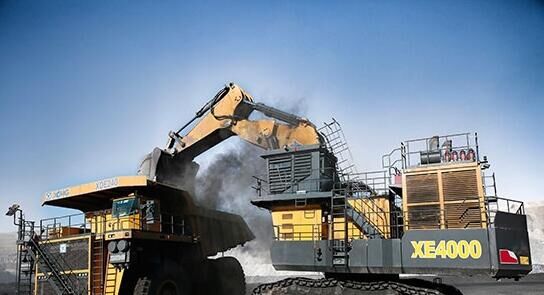 徐工國(guó)內(nèi)首臺(tái)400噸級(jí)液壓挖掘機(jī)和徐工巨型礦用自卸車(chē)在山西平朔煤礦施工