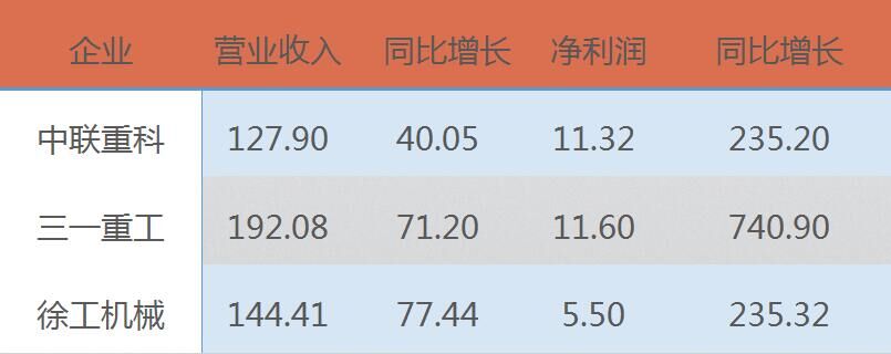 混凝土機械市場復蘇程度決定未來生產(chǎn)企業(yè)利潤回復的彈性高度,混凝土機械的回暖,有利改善行業(yè)企業(yè)毛利率水平。中聯(lián)重科、三一重工、徐州股份三家上市公司上半年年報數(shù)據(jù)喜人。