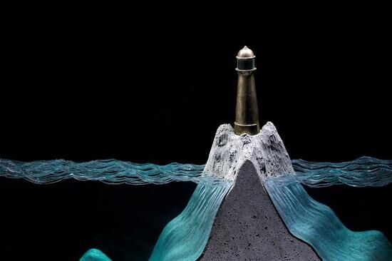 水、陸地、巖石被這位來(lái)自悉尼的雕塑家Ben Young用玻璃和混凝土打磨得惟妙惟肖,逼真同時(shí)很藝術(shù)。Ben Young出生在新西蘭,從事玻璃雕塑制作已有10多年的時(shí)間。他的作品看上去嚴(yán)絲合縫,精確細(xì)膩,盡管是混凝土這種粗糙的材料,也被打磨得如奶油般光滑。