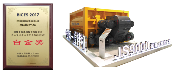 2017 BICES展上其憑借完美的外觀設計、無油軸端密封技術、雙料門結構、軸端密封檢測技術、混凝土溫度及塌落度在線檢測裝置等多項核心專利技術獲得行業(yè)的認同、用戶的認可,相信在后續(xù)的使用中,JS9000水工型混凝土攪拌主機必將承擔重任,大放異彩!
