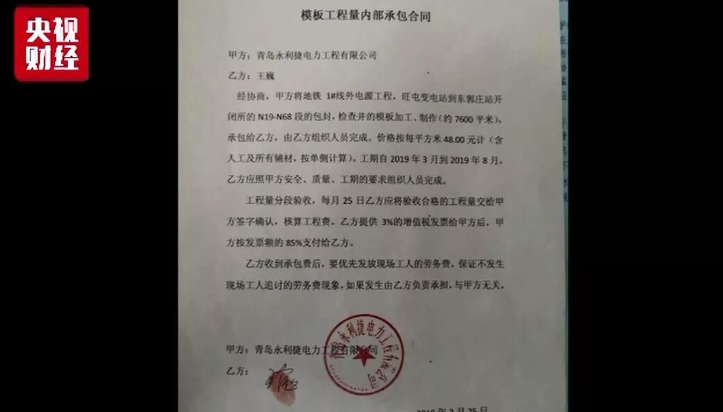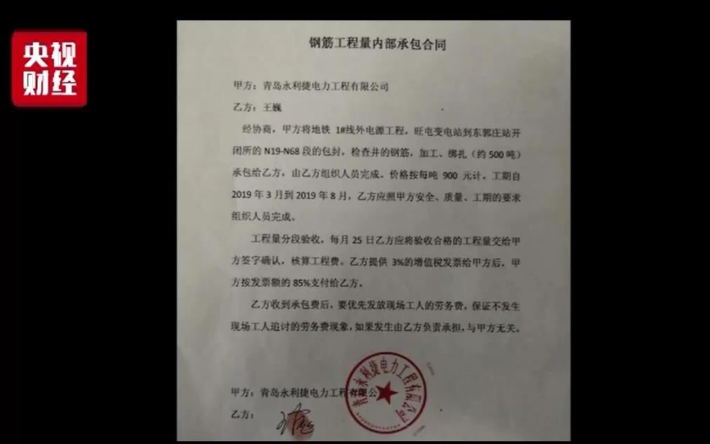 從青島地鐵到爆料人,一個(gè)總額1.4億元的地鐵配套項(xiàng)目工程,歷經(jīng)永利捷、順源達(dá)等多家公司分包、以及多位“中間人”轉(zhuǎn)手。其中環(huán)節(jié)到底有沒(méi)有涉嫌違法?央視記者走訪了青島地鐵集團(tuán)和葛洲壩電力公司。