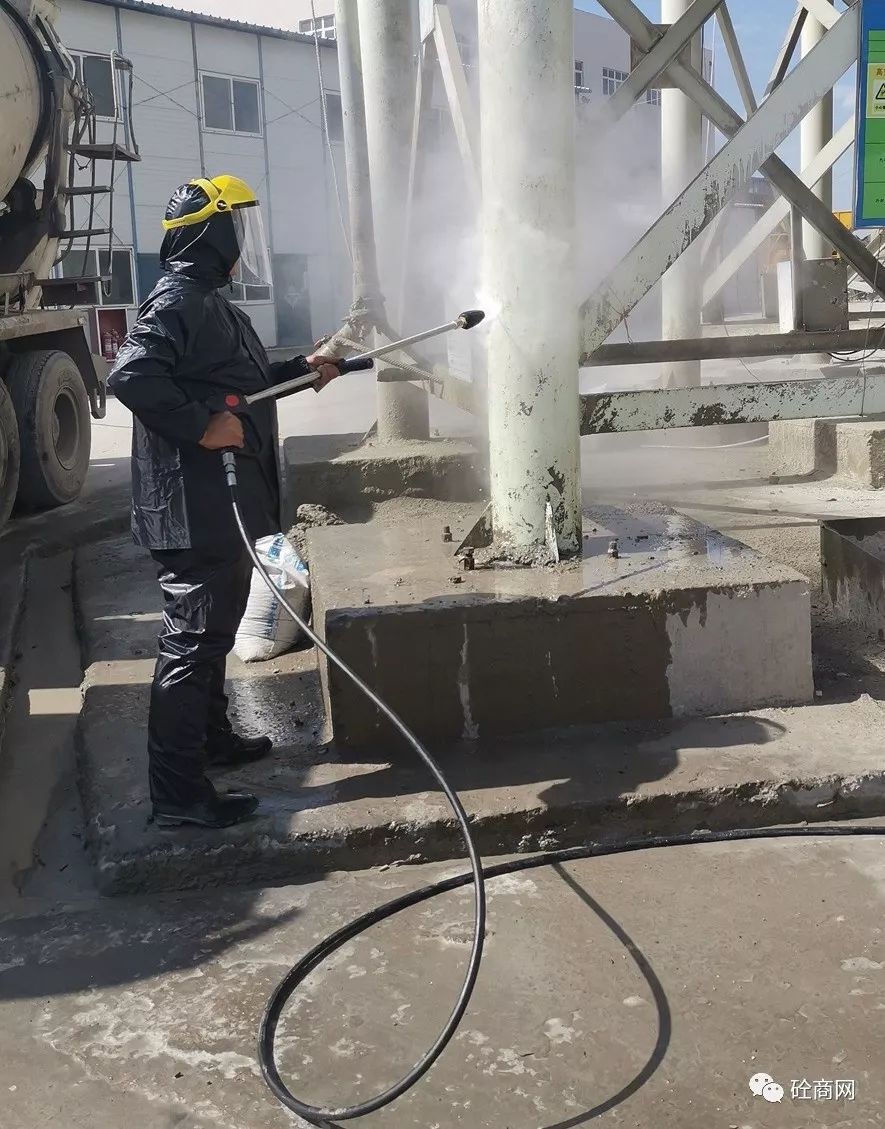 在楊技術(shù)員給站上工作人員進(jìn)行初步講解指導(dǎo)后,首先對(duì)兩年沒有清理過的水泥倉(cāng)支腿下方累積的混凝土進(jìn)行了處理。那么,效果究竟怎么樣呢?具體視頻關(guān)注“砼商網(wǎng)”公眾號(hào),回復(fù)“高壓清洗機(jī)”即可獲得技術(shù)員正準(zhǔn)備打攪拌機(jī)主樓容易噴濺混凝土的地方時(shí)該攪拌站站長(zhǎng)說道,這可得有兩年沒清理過的混凝土結(jié)塊,十幾公分厚呀!你們這高壓清洗機(jī)能打掉嗎?這是混凝土??!這么長(zhǎng)時(shí)間了,還這么厚,打不下去怎么辦?正在小編心里打鼓的時(shí)候,楊技術(shù)員說道,沒問題,放心吧!