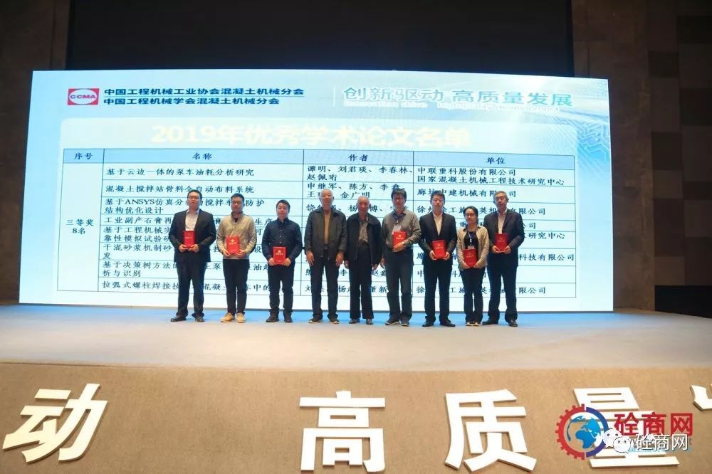 中國(guó)工程機(jī)械工業(yè)協(xié)會(huì)混凝土機(jī)械分會(huì)符忠軒會(huì)長(zhǎng)以及中國(guó)工程機(jī)械工業(yè)協(xié)會(huì)混凝土機(jī)械分會(huì)顧問易君女士為優(yōu)秀論文一等獎(jiǎng)獲得者頒發(fā)獲獎(jiǎng)證書;