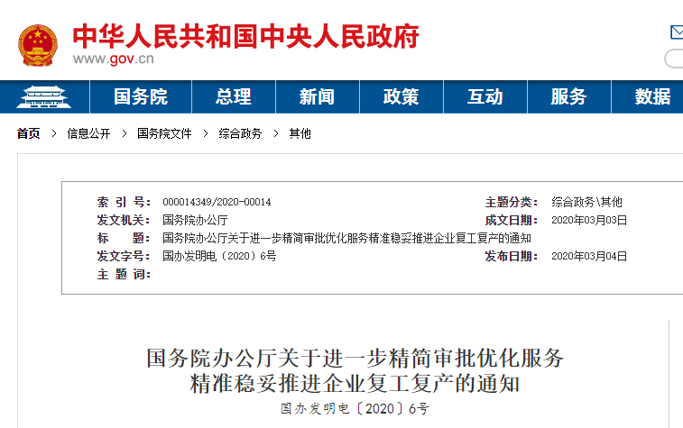 為貫徹落實黨中央關(guān)于統(tǒng)籌推進疫情防控和經(jīng)濟社會發(fā)展工作的決策部署,深化“放管服”改革,取消不合理審批,規(guī)范審批事項和行為,提供便利服務,精準穩(wěn)妥推進企業(yè)復工復產(chǎn),現(xiàn)就除湖北省、北京市以外地區(qū)復工復產(chǎn)有關(guān)事項通知如下: