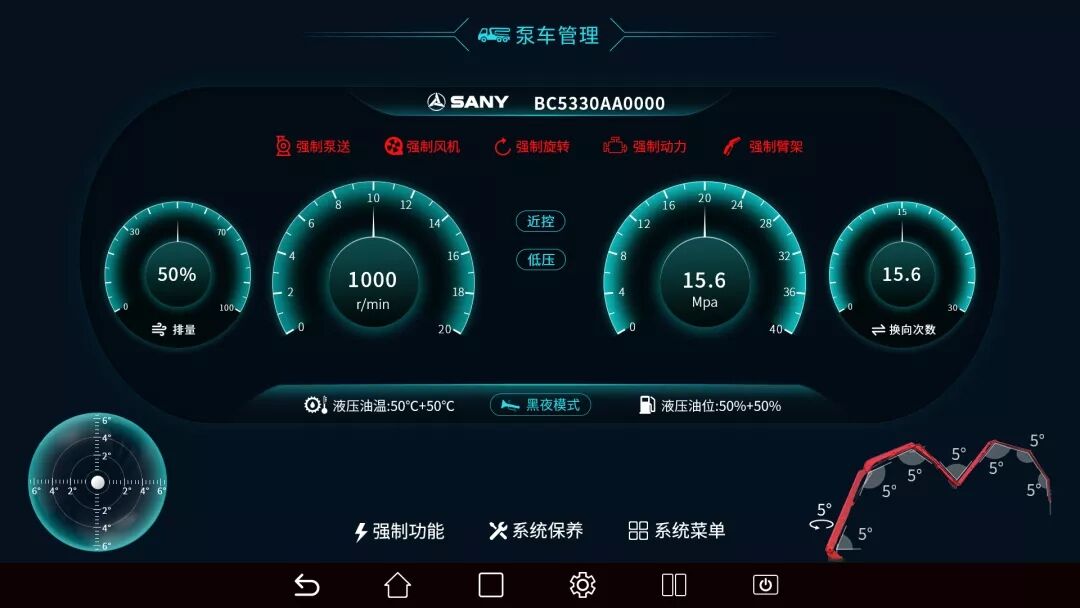 除了柔和模式省油之外,S系列泵車(chē)在爬坡時(shí)也更有勁,而且油耗并沒(méi)有增加。