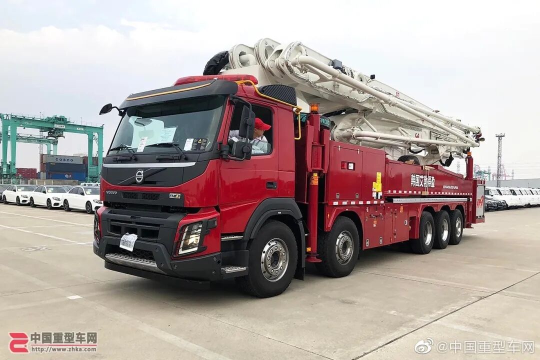 沃爾沃FMX 10x4底盤(pán)艾勃得盈高噴車(chē)混凝土泵車(chē)改造成為舉高噴射消防車(chē)就已經(jīng)由泵車(chē)潮牌施維英干過(guò)這事了把時(shí)間快進(jìn)到21世紀(jì)的中國(guó)中聯(lián)與三一兩大國(guó)產(chǎn)泵車(chē)品牌相繼推出大跨度高噴消防車(chē)明眼人一看就知道是利用自身泵車(chē)底子打造而成但今天要說(shuō)的要說(shuō)的是個(gè)一個(gè)韓國(guó)品牌