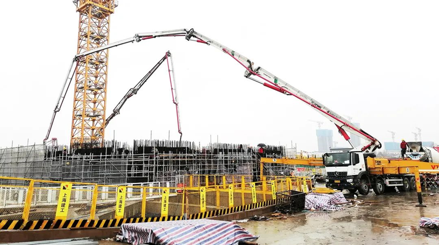 此次底板澆筑的混凝強度等級達(dá)C50P10,屬于高強度混凝土,其配合比更是屬于施工方“量身定制”,混凝土性能提升的同時也給泵車施工帶來了巨大的壓力。