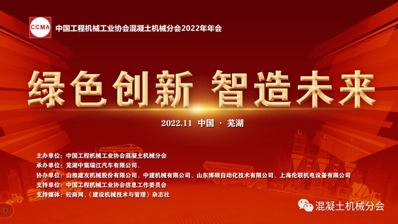 2022年11月17日至19日,以“綠色創(chuàng)新 智造未來”為主題的中國工程機(jī)械工業(yè)協(xié)會(huì)混凝土機(jī)械分會(huì)2022年年會(huì)在安徽蕪湖隆重舉行。
