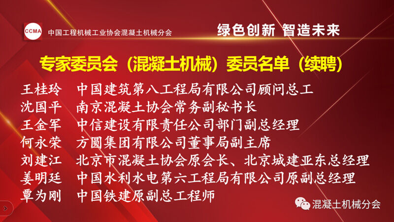 中國工程機(jī)械工業(yè)協(xié)會(huì)混凝土機(jī)械分會(huì)會(huì)長符忠軒宣讀兩份通知。一份為《關(guān)于2022年中國工程機(jī)械工業(yè)協(xié)會(huì)專家委員會(huì)(混凝土機(jī)械)委員聘任的通知》,其中中國工程機(jī)械工業(yè)協(xié)會(huì)專家(混凝土機(jī)械)委員會(huì)(混凝土機(jī)械)續(xù)聘7位,新聘6位委員,共13位。