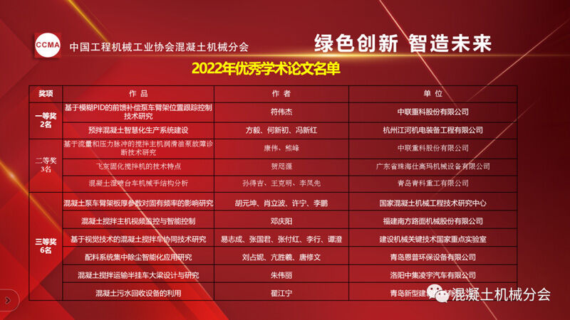 中國工程機(jī)械工業(yè)協(xié)會(huì)混凝土機(jī)械分會(huì)副秘書長龍衛(wèi)平先生宣讀《關(guān)于發(fā)布2022年混凝土機(jī)械優(yōu)秀論文獲獎(jiǎng)名單的通知》。