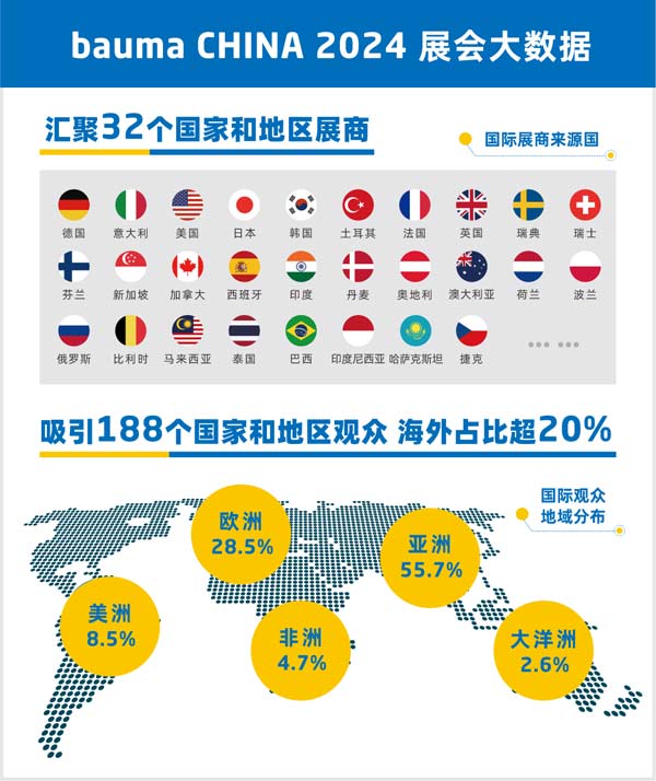 在此進程中,新興市場正成為增長新藍海。東南亞、中東、拉美等地旺盛的基建需求,持續(xù)拉動國產(chǎn)設備出口。而bauma CHINA 2026的國際化平臺價值愈發(fā)凸顯:截至目前,不僅美國、德國、意大利、日本等傳統(tǒng)強國展商確認參展,印度、土耳其、巴西等新興市場力量也積極加入。上屆展會超28萬全球買家的龐大資源,使其成為不可或缺的“雙向機遇窗口”。