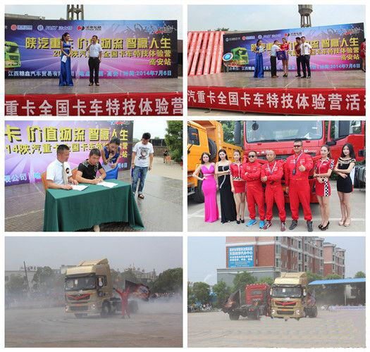 活動現(xiàn)場反應良好,用戶踴躍訂車。南昌地區(qū)現(xiàn)場訂車22輛,其中包含特技表演的10輛X3000牽引車。九江地區(qū)現(xiàn)場訂車28輛,不包含特技表演的3輛F3000牽引車;配件銷售上百萬元。上饒地區(qū)現(xiàn)場訂車31輛;配件銷售五十余萬元。高安地區(qū)現(xiàn)場訂車21輛,不包含特技表演的3輛X3000牽引車。通過此次活動,陜汽重卡知名度與美譽度進一步提高,后續(xù)訂車用戶踴躍。