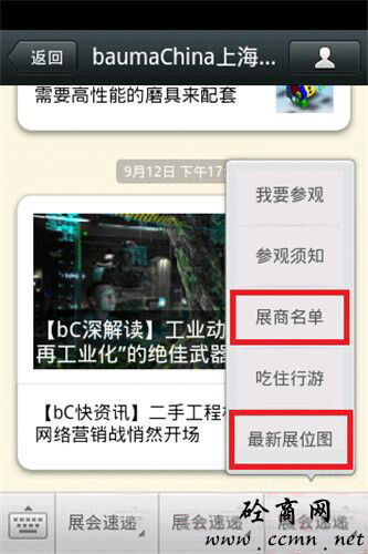 China的公眾微信號(hào)(baumachina),在微信菜單“觀眾中心”即可輕松查看展位圖及展商名單