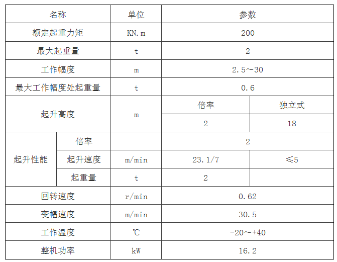 塔機(jī)使用狀況的基礎(chǔ)上,通過(guò)對(duì)各關(guān)鍵部件優(yōu)化設(shè)計(jì)后的一種新型號(hào)塔機(jī),該塔機(jī)最大起重量2t,最大工作幅度30米,起升高度18米,可以滿(mǎn)足小別墅群及小型建筑施工的需求。