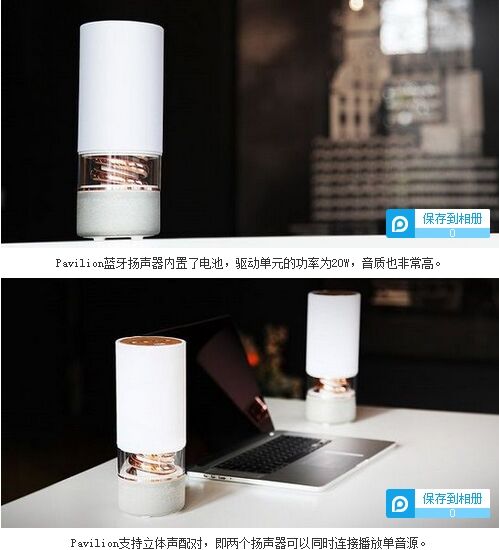 今天我們要介紹的是一款造型設(shè)計和材質(zhì)都非常獨特的藍牙音箱,它就是結(jié)合了混凝土基座和螺旋銅管低音部件的Pavilion。該揚聲器目前正在Kickstarter上進行眾籌,其設(shè)計者則是Hult Design。Pavilion支持藍 Pavilion的直徑為3.95英寸(10 cm)、高10.22英寸(26cm)、重3.3磅(1.5 kg),感興趣的伙伴可以拿出$229美元去買一個白色或黑色版本(比零售價要便宜$110美元)。