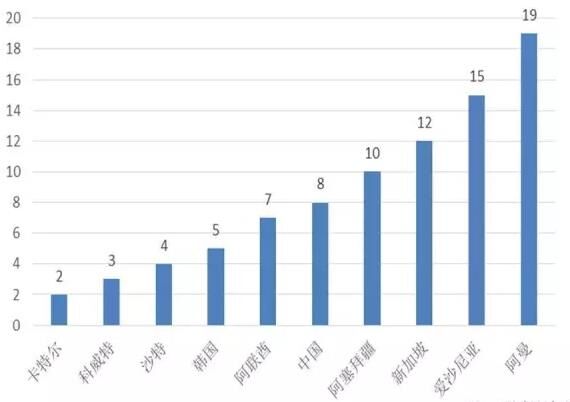 世界經(jīng)濟(jì)論壇發(fā)布的《2015-2016全球競爭力報(bào)告》,用法律和行政架構(gòu)、基礎(chǔ)設(shè)施、宏觀經(jīng)濟(jì)環(huán)境、衛(wèi)生和基礎(chǔ)教育、高等教育和培訓(xùn)、市場效率、勞動(dòng)力市場效率、金融市場發(fā)展、技術(shù)、市場規(guī)模、商業(yè)環(huán)境完備性、創(chuàng)新12個(gè)指標(biāo)對(duì)全球140個(gè)國家和地區(qū)的競爭力進(jìn)行了評(píng)估,并對(duì)12個(gè)指標(biāo)賦值加權(quán)后,得出各國的綜合競爭力排名。“一帶一路”沿線66個(gè)國家中,有53個(gè)國家的競爭力數(shù)據(jù)在此報(bào)告中體現(xiàn)(詳見附表2)。排名位于前70名(140個(gè)國家,70名為世界平均水平)的國家有35個(gè),其中新加坡、日本、卡特爾、阿聯(lián)酋、馬來西亞、沙特、韓國、以色列、中國、愛沙尼亞的排名在“一帶一路”沿線國家中位于前10名,在全球的排名分別為第2名、第6名、第14名、第17名、第18名、第25名、第26名、第27、第28名、第30名;中國排名靠前的主要因是宏觀經(jīng)濟(jì)環(huán)境良好、市場規(guī)模大,其余10個(gè)指標(biāo)排名均在30名以后;位于后70名的國家31個(gè),其中阿爾巴尼亞、塞爾維亞、尼泊爾、黎巴嫩、不丹、孟加拉國、波黑、埃及、巴基斯坦、緬甸的排名在“一帶一路”沿線國家中位于后10名,在全球的排名分別為第93名、第94名、第100名、第101名、第105名、第107名、第111名、第116名、第126名、第131名??傮w上看,“一帶一路”沿線國家競爭力在全球排名分布比較靠后,整體競爭力能力有待提升。