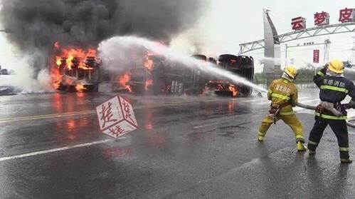 參與施救的消防戰(zhàn)士介紹,當(dāng)時(shí)在現(xiàn)場(chǎng)看到,一輛槽罐車與一攪拌車側(cè)翻在路中央,不遠(yuǎn)處是一處加氣站,經(jīng)過(guò)火情偵察,發(fā)現(xiàn)載甲醇槽罐車正在猛烈燃燒,槽罐車儲(chǔ)量約30噸,情況危機(jī)。為了確保安全,救援官兵立即協(xié)助現(xiàn)場(chǎng)交警實(shí)施交通管制、疏散群眾,同時(shí),架設(shè)水槍、水炮陣地,防止火勢(shì)蔓延,展開滅火。