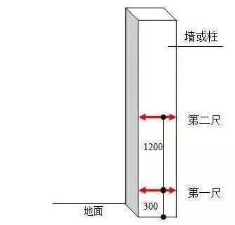二、截面尺寸偏差1、指標說明:反映層高范圍內(nèi)剪力墻、混凝土柱施工尺寸與設(shè)計圖尺寸的偏差。2、測量工具:5m鋼卷尺3、測量方法和數(shù)據(jù)記錄(1)以鋼卷尺測量同一面墻/柱截面尺寸,精確至毫米。(2)同一墻/柱面作為1個實測區(qū),累計實測實量不少于5個實測區(qū)。每個實測區(qū)從地面向上300mm和1500mm各測量截面尺寸1次,選取其中與設(shè)計尺寸偏差最大的數(shù),作為判斷該實測指標合格率的1個計算點。4、示例:
