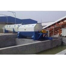 該系統(tǒng)主要由:攪拌車加水清洗裝置,溜槽輸送裝置,砂石漿水分離裝置,和泥漿水后處理裝置組成?;炷凛斔驮O(shè)備清洗后,將殘余混凝土排入溜槽中,在高壓水流沖擊下,經(jīng)溜槽進入砂石分離機,在不斷旋轉(zhuǎn)的分離機作用下,對混凝土進行充分的清洗,同時將砂、石進行分離,分離后的砂、石在導料葉片的作用下背向流動,再通過提升式出料口排出分離機,分別堆放。清洗后的漿水從分離機的底部排出進入沉淀池逐級沉淀后循環(huán)使用或進入攪拌池回收利用。進入攪拌池(一般情況2個攪拌池)的漿水為了防止沉淀凝固,需通過攪拌器的作用,攪拌器的工作為間歇式。分離出水泥漿在連續(xù)的攪拌器作用下,再通過高壓污水泵輸送到攪拌樓中待生產(chǎn)計量再利用。整個控制系統(tǒng)設(shè)有手動和自動控制,方便控制設(shè)置,整個系統(tǒng)運行可靠,故障率低,維護量少等特點。