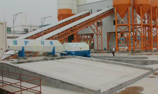 該系統(tǒng)主要由:攪拌車加水清洗裝置,溜槽輸送裝置,砂石漿水分離裝置,和泥漿水后處理裝置組成?;炷凛斔驮O備清洗后,將殘余混凝土排入溜槽中,在高壓水流沖擊下,經溜槽進入砂石分離機,在不斷旋轉的分離機作用下,對混凝土進行充分的清洗,同時將砂、石進行分離,分離后的砂、石在導料葉片的作用下背向流動,再通過提升式出料口排出分離機,分別堆放。清洗后的漿水從分離機的底部排出進入沉淀池逐級沉淀后循環(huán)使用或進入攪拌池回收利用。進入攪拌池(一般情況2個攪拌池)的漿水為了防止沉淀凝固,需通過攪拌器的作用,攪拌器的工作為間歇式。分離出水泥漿在連續(xù)的攪拌器作用下,再通過高壓污水泵輸送到攪拌樓中待生產計量再利用。整個控制系統(tǒng)設有手動和自動控制,方便控制設置,整個系統(tǒng)運行可靠,故障率低,維護量少等特點。