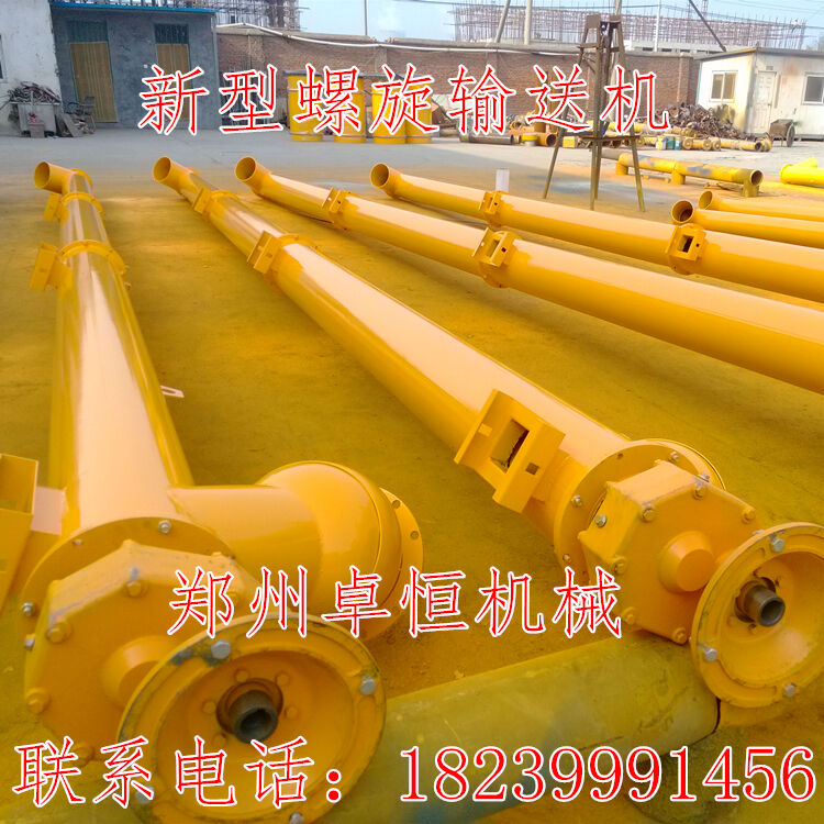 旋轉(zhuǎn)的螺旋葉片將物料推移而進(jìn)行螺旋輸送機(jī)輸送,使物料不與螺旋輸送機(jī)葉片一起旋轉(zhuǎn)的力是物料自身重量和螺旋輸送機(jī)機(jī)殼對物料的摩擦阻力。螺旋輸送機(jī)旋轉(zhuǎn)軸上焊的螺旋葉片,葉片的面型根據(jù)輸送物料的不同有實(shí)體面型、帶式面型、葉片面型等型式。螺旋輸送機(jī)的螺旋軸在物料運(yùn)動方向的終端有止推軸承以隨物料給螺旋的軸向反力,在機(jī)長較長時,應(yīng)加中間吊掛軸。
