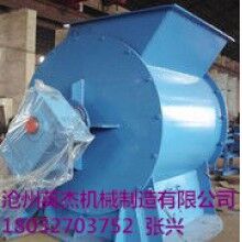 回轉(zhuǎn)卸料器的結(jié)構(gòu)是回轉(zhuǎn)葉輪、殼體、驅(qū)動(dòng)裝置等,回轉(zhuǎn)葉輪上都焊有耐磨板從而提高了葉輪的使用壽命;回轉(zhuǎn)卸料器的入料口中心距和殼體中心線有一定的偏差,是為了適用于顆粒較大的物料的進(jìn)入。 回轉(zhuǎn)卸料器的殼體內(nèi)襯大都裝有抗磨層;葉輪是由兩端軸承支承,可以保證葉輪和殼體之間的間隙均勻;由于入料溫度較高,葉輪與殼體之間留有相應(yīng)的間隙。兩端密封是用石棉盤根密封、方式簡(jiǎn)單、密封性好,容易操作及更換。