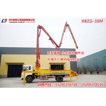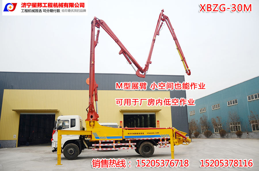 打開所有支腿的機械鎖;將電控柜控制面板上的“手/遙”轉換開關旋至遙控檔。將支腿/臂架轉換開關拔到支腿位置;確認支腿工作區(qū)沒人后,按住綠色按鈕開關,操作相應手柄,按手柄處標示,操作泵車左右側支腿手柄;依次將前后支腿張開,直至擺動到最大極限位置;面條件,墊好合適墊塊,降落兩前支腿,至前輪胎離地,再降落兩后支腿,至后輪胎離地;調節(jié)前后支腿頂升高度,將整機調整為水平;最后務必確認各支腿控制手柄已回到中間位置。