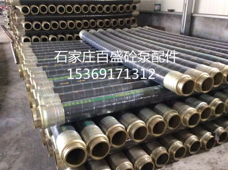 特點:。高壓混凝土泵膠管,4層鋼絲,內(nèi)層加厚,高壓,高耐磨,長壽命,防脫皮,防掉頭泵車膠管,混凝土泵膠管,樁機膠管,混凝土輸送泵膠管。通用于混凝土輸送泵膠管,泵車膠管,樁機膠管,正常使用不低于10000方。低壓混凝土輸送泵膠管,2層加粗鋼絲,常規(guī)內(nèi)層耐磨橡膠,主要用于低壓混凝土泵尾端或泵車尾端膠管。正常使用不低于8000方。但是市場上偽劣混凝土泵膠管的使用壽命一般不會超過3000方,請客戶注意。