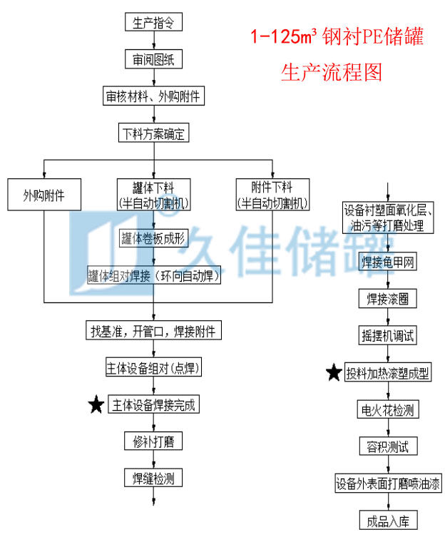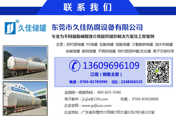 東莞久佳生產(chǎn):久塑牌(1-125m3)立/臥式鋼襯塑(PE/PO)/碳鋼/不銹鋼儲罐、(5-50m3)管口一體成型PE儲罐、鋼襯塑攪拌罐/反應罐/過濾罐/中和罐、離子交換柱、鹽酸儲罐、硫酸儲罐、次氯酸鈉儲罐、液堿儲罐、硝酸儲罐、減水劑儲罐、化工儲罐、酸堿儲罐等防腐儲存容器設備;公司規(guī)模和產(chǎn)品質(zhì)量在國內(nèi)處于領先地位。