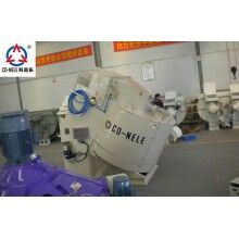 CQM系列高效強(qiáng)力混合機(jī)在強(qiáng)力混合機(jī)的料盤中,偏心安裝攪拌星與高速轉(zhuǎn)子。料盤以低速順時(shí)針方向旋轉(zhuǎn),連續(xù)不斷地將物料送入中速逆時(shí)針轉(zhuǎn)動(dòng)的攪拌星的運(yùn)轉(zhuǎn)軌跡內(nèi),借助料盤旋轉(zhuǎn)及刮料板的作用,將物料翻轉(zhuǎn)送入高速逆時(shí)針旋轉(zhuǎn)的高速轉(zhuǎn)子運(yùn)行的軌跡內(nèi)進(jìn)行混料。在連續(xù)的、逆流相對(duì)運(yùn)動(dòng)的高強(qiáng)度混練過程中,物料能夠在很短的時(shí)間內(nèi)混合均勻一致,