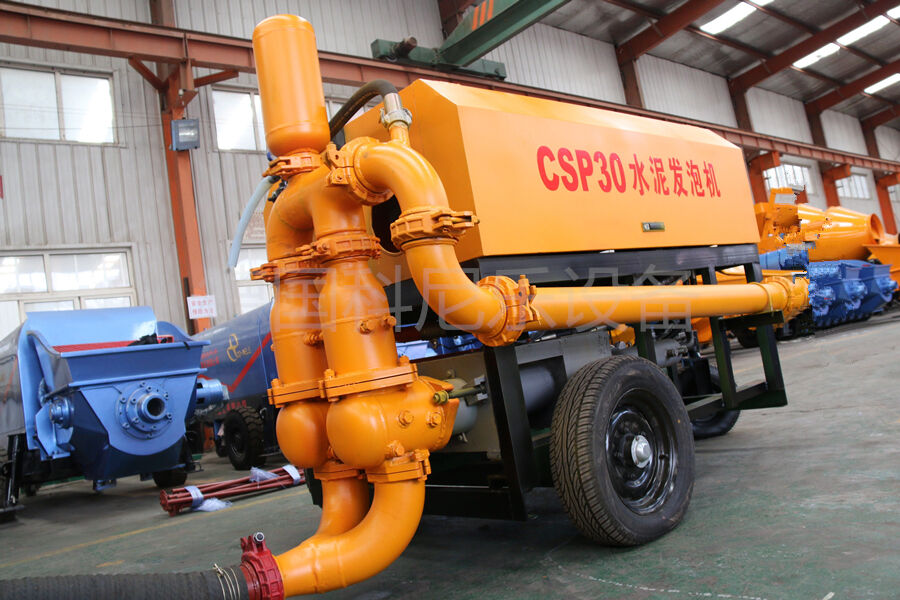 CSP系列中小型水泥發(fā)泡機,是我公司自主開發(fā)的專利產(chǎn)品專利產(chǎn)品。其中水泥發(fā)泡機由機械式改為液壓式,在相同條件下該設(shè)備所占空間更小,發(fā)泡效果更好,施工效率更高,性能更加穩(wěn)定。在地暖隔熱層施工中,以CSP-40為例,一臺單機單班施工量可達4000-5000平米(3cm厚度),輸送高度可達150米,水平距離達500米以上。水泥上料機和水泥攪拌機是其輔助設(shè)備,有了它們實現(xiàn)了上料和攪拌的自動化,節(jié)省了人員的勞動強度,大大提高了施工效率。