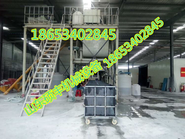 水泥基勻質(zhì)板設(shè)備產(chǎn)品先將減水劑加入水(水溫40℃左右)中,攪拌均勻約20秒,再加粉煤灰、水泥攪拌1分鐘,加樹(shù)脂膠攪拌一分鐘,加纖維、憎水粉、固化劑攪拌30秒(根據(jù)固化速度調(diào)整時(shí)間),入加引氣劑攪拌20秒后充入聚苯顆粒(氣泵打入泥漿底部)攪拌5-10秒鐘后(泡沫顆粒均勻) 裹漿)將料漿倒入模子中刮平。