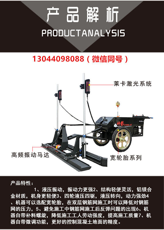 激光整平機適應于鄉(xiāng)村道路混凝土地面、工業(yè)廠房和廠區(qū)地面,地下停車場地面、工業(yè)樓層地面等多元化混凝土場地施工,替代傳統(tǒng)振動尺、振動梁、振動滾等人員多大面積累積誤差大等施工缺陷;
