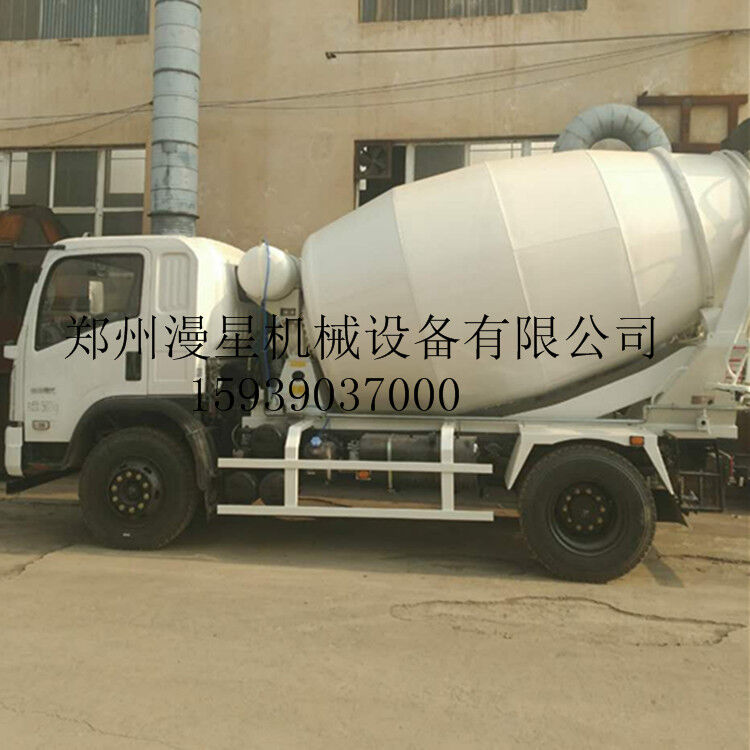 主要由攪拌筒及其輔助支撐部件組成。攪拌筒是混凝土的裝載容器,它是由薄鋼板制成,為了能夠自動裝、卸混凝土,其焊有形狀的螺旋葉片。轉動時混凝土沿葉片的螺旋方向運動,在不斷的提升和翻動過程中受到混合和攪拌。在進料及運輸過程中,攪拌筒正轉,混凝土沿葉片向里運動,出料時,攪拌筒反轉,混凝土沿著葉片向外卸出。攪拌筒的轉動則是靠液壓驅動裝置來保證。裝載量為3~6立方。的混凝土攪拌運輸車一般采用由汽車發(fā)動機通過動力輸出軸帶動液壓泵,再由高壓油推動液壓馬達驅動攪拌筒,裝載量為9~12立方的則由車載輔助柴油機帶動液壓泵驅動液壓馬達。葉片是攪拌裝置中的主要部件,損壞或嚴重磨損會導致混凝土攪拌不均勻。另外,葉片的角度如果設計不合理,還會使混凝土出現(xiàn)離析。