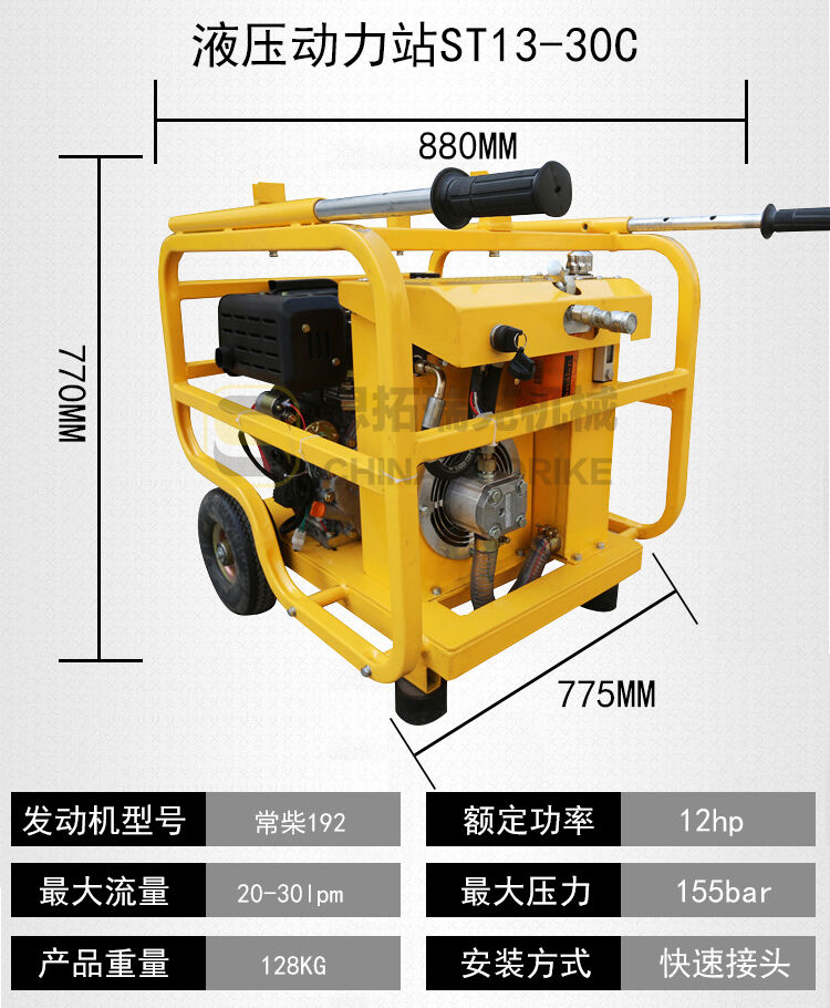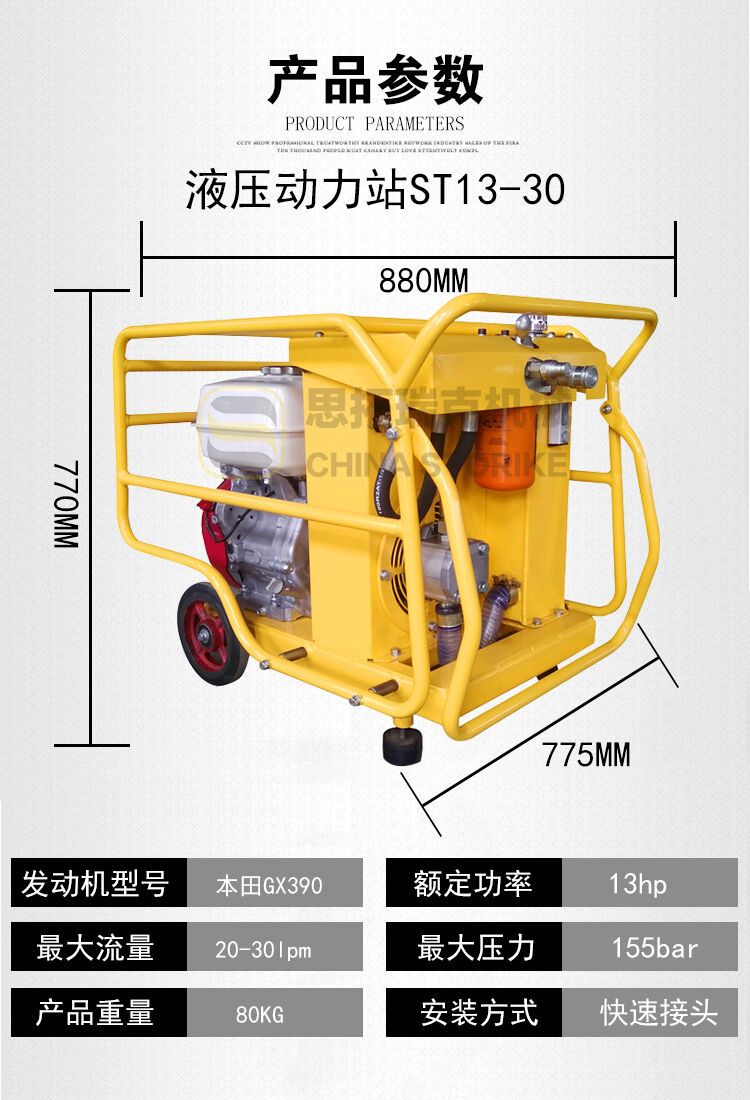 具有工效高、體積小、重量輕和動力強(qiáng)勁等特點。在公路市政養(yǎng)護(hù)、燃?xì)庾詠硭畵屝?、地震和消防救援作業(yè)中提供方便可靠的動力源。