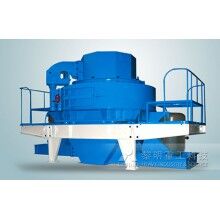 物料由進料斗進入制砂機內(nèi),經(jīng)進料槽進入高速旋轉(zhuǎn)的葉輪中,在葉輪內(nèi)被迅速加速,其加速度可達數(shù)百倍重力加速度,然后以56~66m/ s的速度從葉輪三個均布的流道內(nèi)拋射出去,具有較大動能的與破碎腔內(nèi)周邊鐵砧相碰撞,大部分物料將動能瞬間轉(zhuǎn)化,產(chǎn)生撞擊力和摩擦力,物料在撞擊力作用下,沿薄弱斷面如河卵石的分界線、接合部位和微小裂隙處斷裂,變成細(xì)小顆粒,在重力作用下落入下部卸料斗;部分還具有動能的河卵石,經(jīng)鐵砧撞擊后反彈,與葉輪流道口發(fā)射出來的河卵石碰撞,再次與鐵砧撞擊。這樣,一塊河卵石在破碎腔內(nèi)兩次或多次撞擊鐵砧,通過撞擊、摩擦和研磨破碎,形成流體狀河卵石混合物,從卸料斗內(nèi)排出。