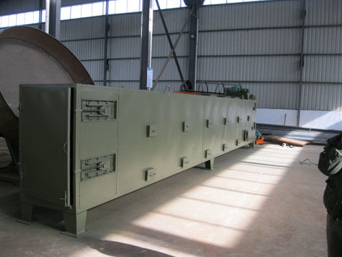 網(wǎng)帶烘干機(jī)將所要處理的物料通過適當(dāng)?shù)匿伭蠙C(jī)構(gòu),如星型布料器、擺動(dòng)帶、粉碎機(jī)或造粒機(jī),分布在輸送帶上,輸送帶通過一個(gè)或幾個(gè)加熱單元組成的通道,每個(gè)加熱單元均配有空氣加熱和循環(huán)系統(tǒng),每一個(gè)通道有一個(gè)或幾個(gè)排濕系統(tǒng),在輸送帶通過時(shí),熱空氣從上往下或從下往上通過輸送帶上的物料,從而使物料能均勻干燥。