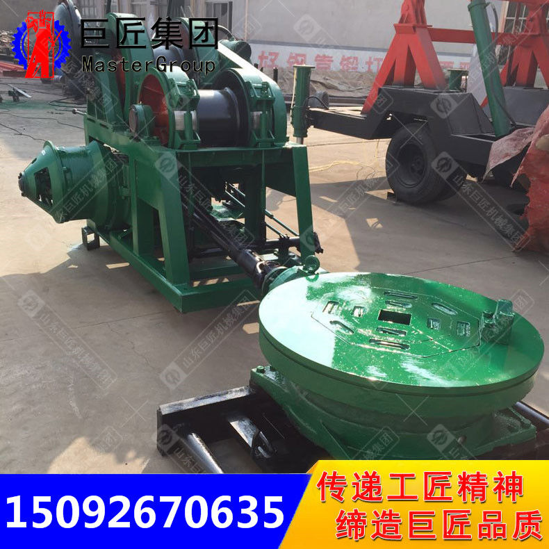 3、鉆機工作時用泥漿沖洗液(正循環(huán)),轉(zhuǎn)盤回轉(zhuǎn)帶動鉆具轉(zhuǎn)動。用卷揚系統(tǒng)實現(xiàn)減壓鉆進、升降鉆具、下井管、沖擊取樣、立放鉆塔等。