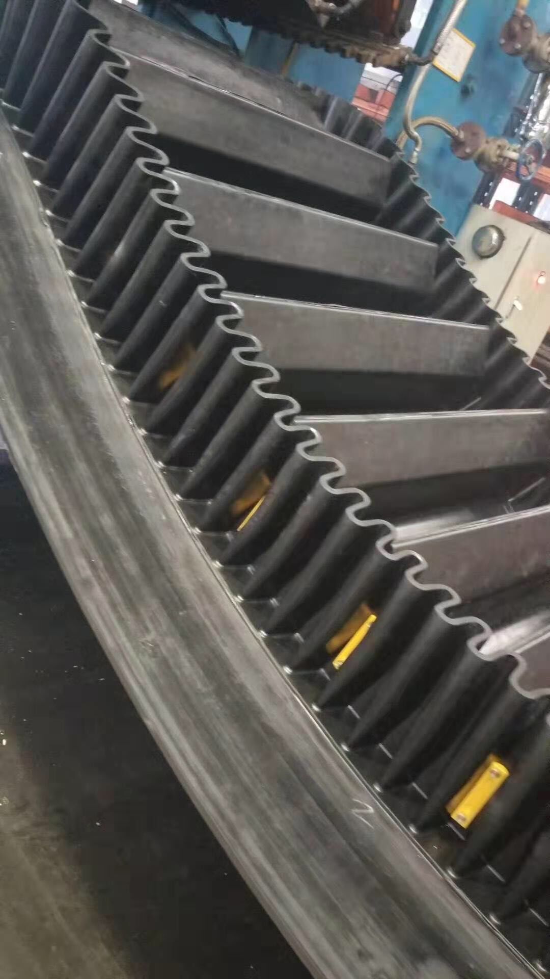 有裙邊無隔板輸送帶和有裙邊有隔板輸送帶兩種,能使各種散裝物料以0-90度作任意傾角連續(xù)輸送、具有輸送傾角大、使用范圍廣、占地面積小。無轉運點、減少土建投資、維護費用低、輸送量大等特點,解決了普通輸送帶或花紋輸送帶所不能達到的輸送角度。波狀擋邊輸送帶可根據(jù)要求設計成一套完整輸送系統(tǒng),避免了間斷輸送和復雜輸送的提升系統(tǒng)。