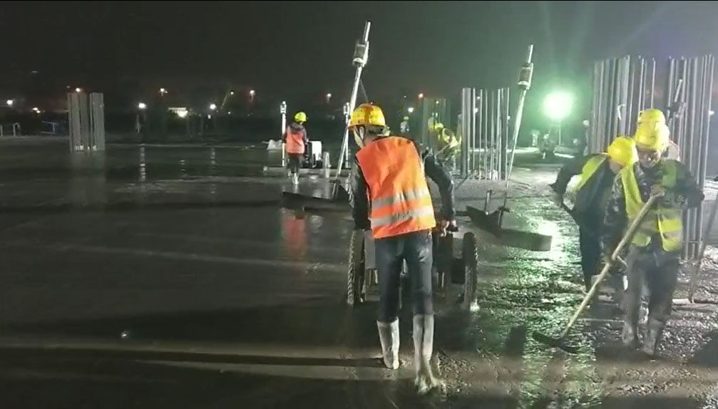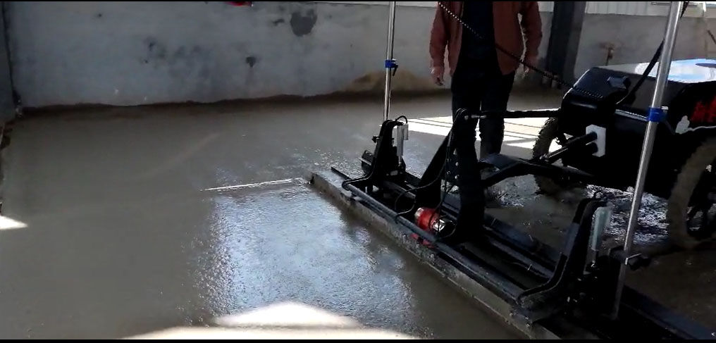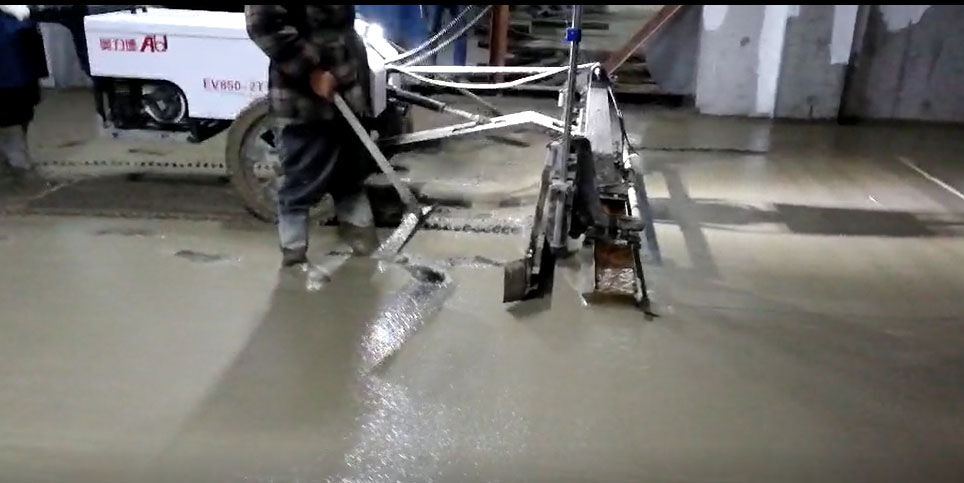 混凝土激光攤鋪機(jī)是用刮板將高出的混凝土帶走并初步刮平,達(dá)到設(shè)計(jì)要求的標(biāo)高。液壓驅(qū)動(dòng)振動(dòng)馬達(dá)產(chǎn)生震動(dòng),頻率為4000次/分鐘,帶動(dòng)整個(gè)振動(dòng)板一起對(duì)混凝土產(chǎn)生振搗。激光攤鋪機(jī)找平不需要拉控制線,也不需要支側(cè)模板來控制地面標(biāo)高,而由攤鋪機(jī)上的激光測(cè)控系統(tǒng)實(shí)時(shí)控制,只要激光發(fā)射器不受干擾,無論攤鋪機(jī)移動(dòng)到哪里,都能確保鋪筑后的地面整體上的標(biāo)高不受影響。